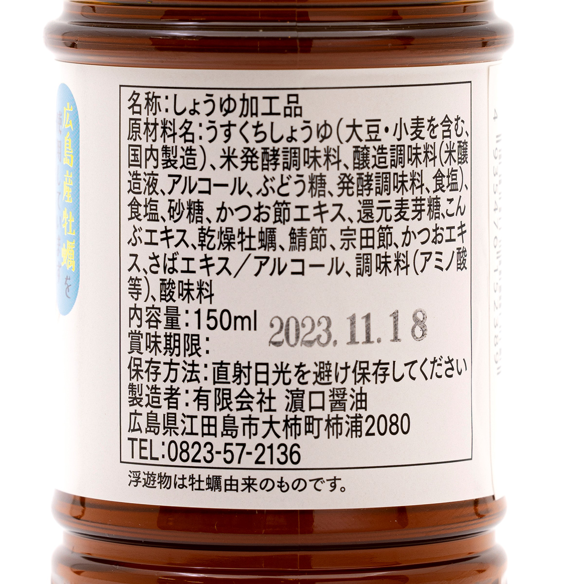 | 原材料名 | うすくちしょうゆ(大豆・小麦を含む国内製造)、米発酵調味料、醸造調味料(米醸造液、アルコール、ぶどう糖、発酵調味料、食塩)、食塩、砂糖、かつお節エキス、還元麦芽糖、こんぶエキス、乾燥牡蠣、鯖節、宗田節、かつおエキス、さばエキス/アルコール、調味料(アミノ酸等)、酸味料 | |