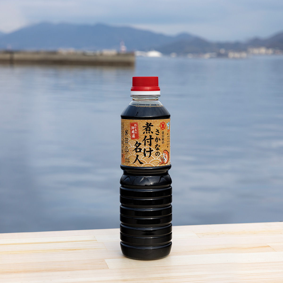 濃口醬油に砂糖、お酒、カツオと昆布のだしなどを調合して作っています。3倍~4倍程度に水で薄めるだけで魚の煮付け、アラ炊き、ぶり大根等が作れます。