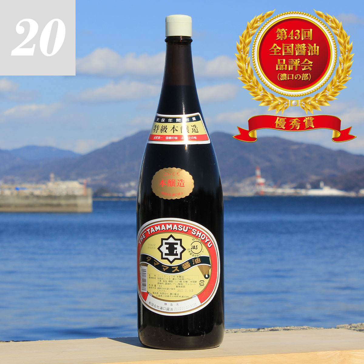 濵口醤油の看板商品「タママス醤油」。JAS規格特級の規格があります。品評会での受賞実績もあります。